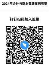 自即日起至2024年4月20日,参赛学生扫描钉钉二维码进群报名,关注有关竞赛培训注意事项等通知和资料,并在线填写《2024年全国高校商业精英挑战赛会计与商业管理案例竞赛知识赛报名汇总表》(报名表附件见钉钉群文件)。