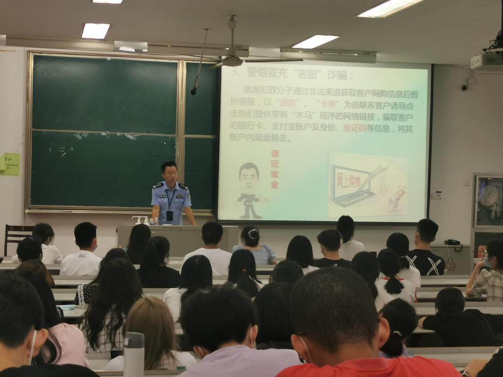金秋时节,秋风送爽。九月是每年新生开学季,为进一步提高同学们的安全防骗意识,9月15日到17日,学院学工办特邀请新兴派出所冯警官为全体大一新生进行“反诈防骗”专题讲座。