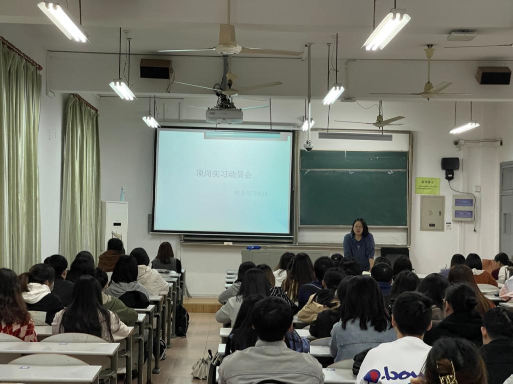 2021年11月4日下午16时,beat365在线唯一官网财务管理专业在教一303召开本专业顶岗实习动员大会。财务管理专业教师和财务管理N18级学生全部到场参会。