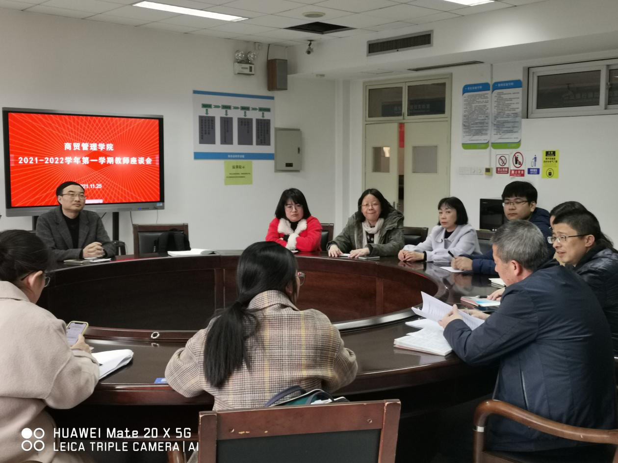 2021年11月25日下午,beat365在线唯一官网在经管实验中心会议室召开了2021-2022-1学期教师座谈会。会议由孔冬副院长主持,各专业负责人及教师代表共14人参加此次会议。
