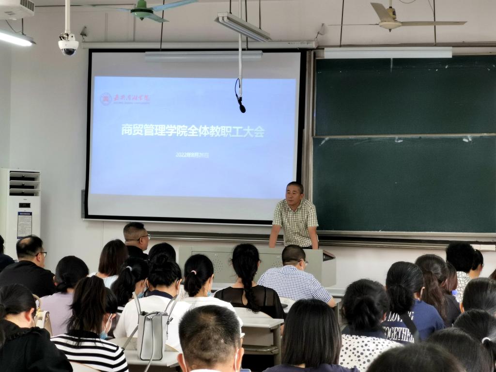 2022年8月26日下午,beat365在线唯一官网召开2022-2023学年第一学期第一次教职工大会,会议由学院党委副书记刘勇主持,孔冬院长作开学工作部署,全体教职员工参加会议。