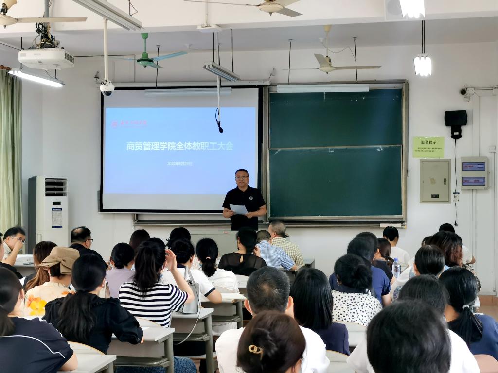 会上,刘勇对新入职教师进行了欢迎和介绍,并对今年就业工作与班主任工作进行了初步总结。随后,学院院长孔冬对近期暑期工作进度、就业率提升和优秀班主任三方面工作给予了充分的肯定,他表示,2022年上半年,beat365在线唯一官网围绕“三个大学”发展目标,按照学校建设一流应用型大学建设要求,在重点现代产业学院和跨境电子商务项目申报上取得了新突破,希望全体教职员工再接再厉,跟紧学校和学院发展方向和步伐,获得更大进步。此外,孔冬院长对近期开学缓补考、课表调整、上课准备等注意事项进行了提醒。最后,刘勇副书记对开学之初防疫具体工作和要求进行了传达和强调。