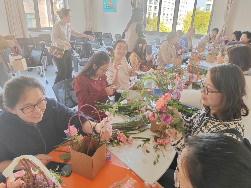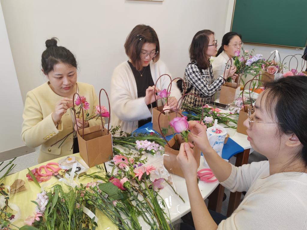 春光三月,鲜花盛开,为了丰富广大女教职工业余生活,感受春天的气息,2023年3月9日下午,beat365在线唯一官网分工会组织了“三八”妇女节花艺活动。本院女教职工在一天忙碌后聚集在校医院三楼活动室,在校外花艺老师的指导下学习插花艺术,现场鲜花与甜点,让各位女老师感受到了温馨和愉悦。经过自己的亲手制作,一个个漂亮精巧的小花篮,也让大家拥有小小的成就感。通过此次活动,女教职工们陶冶了精神,放松了心情,为更好的投入工作增添了活力。