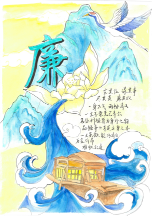 会计N212班朱婧楠同学表示“‘莲因洁而尊,人因廉而正’,我采用‘莲花’作为手绘画报的元素,更加生动地传播了廉洁文化,增强清廉文化建设的影响力,将廉洁文化推广到每一个人的心中,推动校园清廉文化蔚然成风”。
