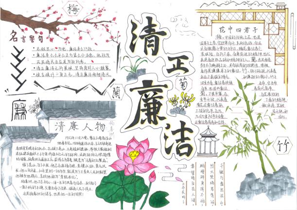 同学们紧扣“廉洁”主题,将清风正气落于笔端,以饱满的热情彩绘廉洁之风,表达了廉洁意识的向往与学习热情,讴歌了崇尚廉洁,反对腐败的新风正气。一幅幅精妙绝伦的主题画报,充分展示了中华优秀传统文化涵养克己奉公、清廉自守的精神境界,反映了我校青年学子廉洁价值、廉洁规范、廉洁风尚的思想认同和精神追求,展现了蓬勃向上的精神风貌和践行廉洁的奋斗姿态。