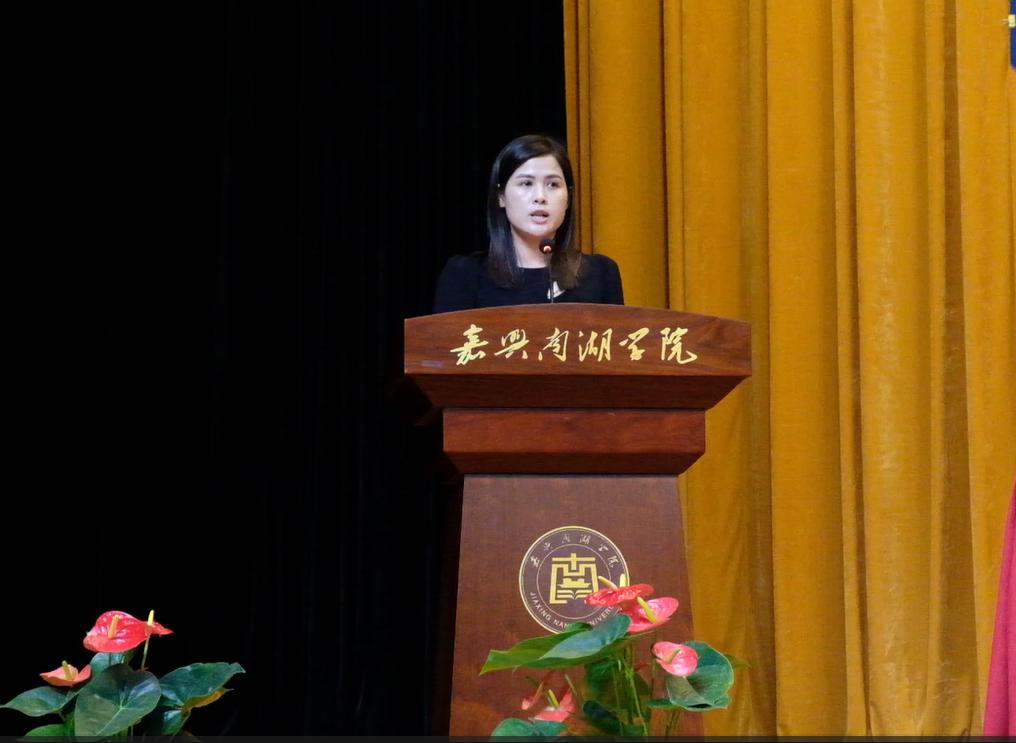 2013届人力资源管理专业毕业生、浙江吴越岩土工程有限公司副总经理吴晴晴作为校友代表发言,她结合自己的学习与工作经历做了精彩的分享,她希望同学们在融入大学生活的同时,要打好学习基础,不沉迷网络,尽情的去享受大学的美好时光。