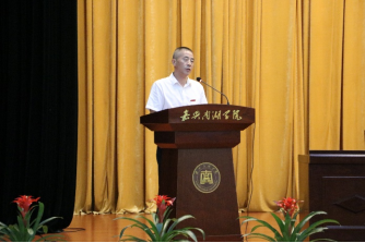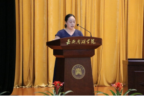 教师代表邓朝晖希望同学们做一位“有志向、有自信、有努力、有作为”的南湖学子,敢想敢做,勇于奋斗,在“开天辟地,敢为人先”的红船精神的引领下,用实际行动践行初心和使命。