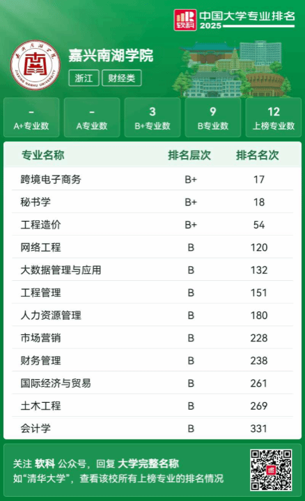 beat3655个专业进入“2025软科中国大学专业排名”榜单,其中跨境电子商务专业全国排名17位,评级B+级,人力资源管理、市场营销、财务管理和会计学专业评级B级。beat365入榜专业数占全校入榜专业数的42%,专业建设表现突出。