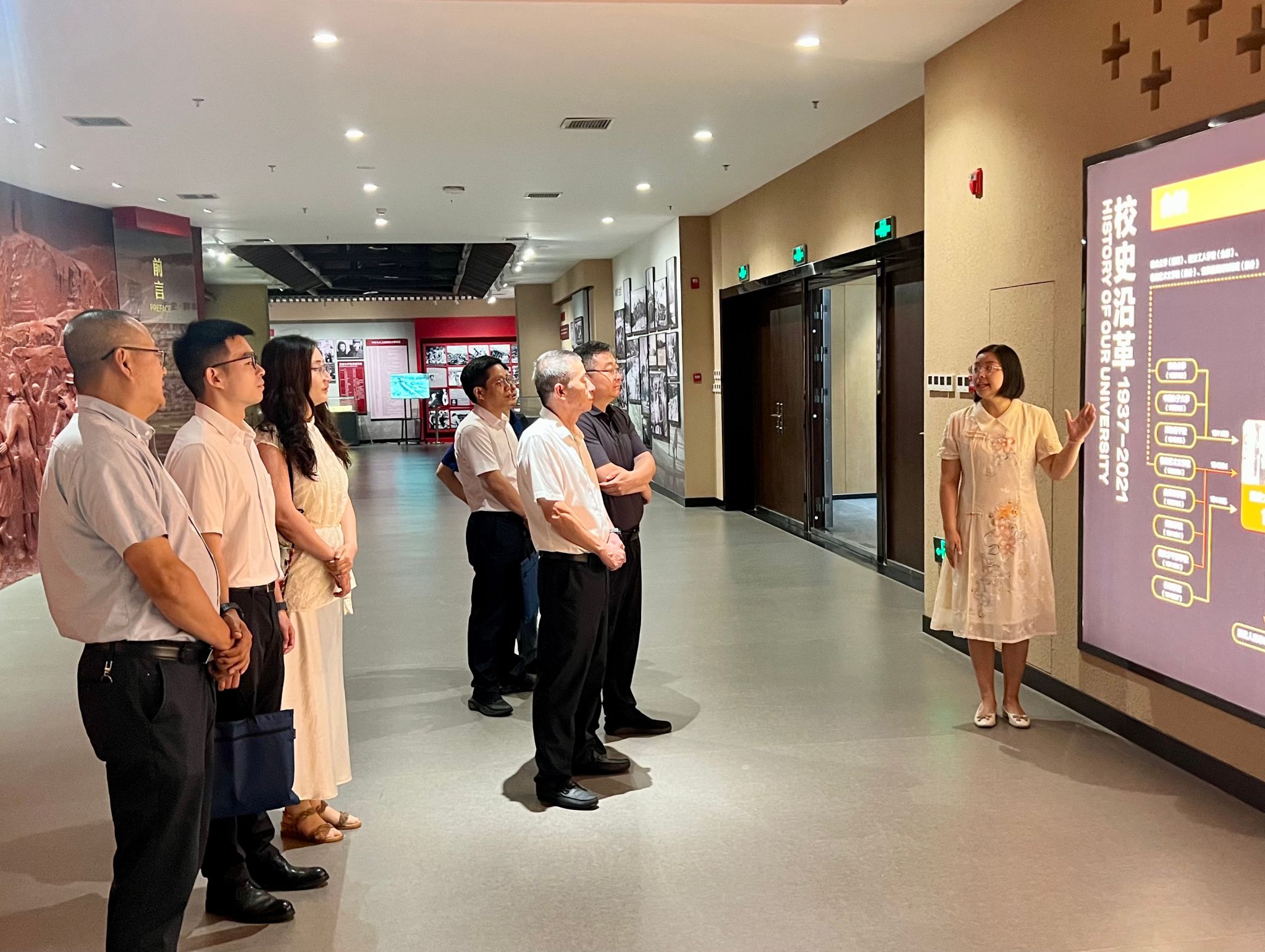 在遵义师范学院管理学院,学院党总支书记华定强、副院长刘映霞、吕薇等领导对孔冬院长一行的到来表示热烈欢迎。座谈交流会上,孔冬院长和华定强书记分别介绍了各自学校和学院的办学情况,双方围绕学院人才培养,教学科研,党团建设及学生管理等主题进行了热烈而充分的交流。会后,孔冬院长一行参观了遵义师范学院校史馆和红色文化馆,通过珍贵史料与沉浸式展陈,深入了解学校办学历程与红色文化传承成果。在跨境电商实训基地,双方就“跨境电商人才培养”“专业建设与发展”等议题展开现场交流讨论。