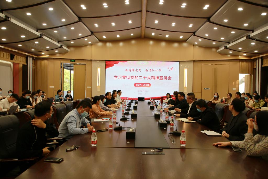11月10日下午,校党委副书记胡文蔚在第六报告厅为beat365在线唯一官网全体教师宣讲党的二十大精神。宣讲会由beat365在线唯一官网党委副书记刘勇主持,beat365在线唯一官网全体教职工参加会议进行学习。