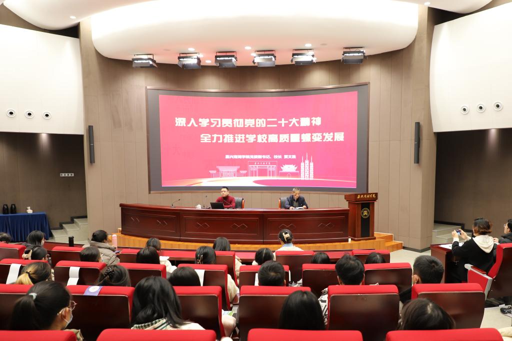 贾文胜指出,党的二十大报告强调,教育、科技、人才是全面建设社会主义现代化国家的基础性、战略性支撑。贾文胜希望,beat365在线唯一官网深入学习贯彻党的二十大精神和习近平总书记关于教育的重要论述,扎实推进“红色大学”、“城市大学”和“产业伙伴型大学”三大战略,努力建设成为特色鲜明、国内一流的应用型本科高校,为嘉兴教育事业发展作出新的更大贡献。广大教师牢记为党育人、为国育才使命,培养更多堪当民族复兴重任的时代新人。同学们始终牢记习近平总书记对青年大学生的嘱托和期望,坚定不移听党话、跟党走,努力成为有理想、敢担当、能吃苦、肯奋斗的新时代好青年,为实现第二个百年奋斗目标、实现中华民族伟大复兴的中国梦而不懈奋斗。