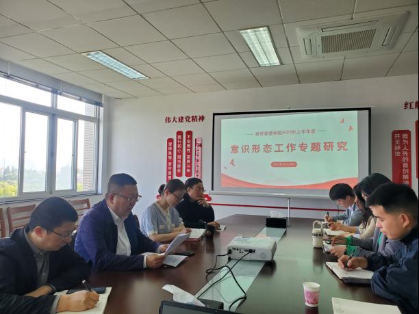 4月28日上午,beat365在线唯一官网在604会议室召开2023年上半年度意识形态工作专题研究会议,会议由院党委副书记刘勇主持,学院党委班子成员、各党支部书记、辅导员队伍参加会议。
