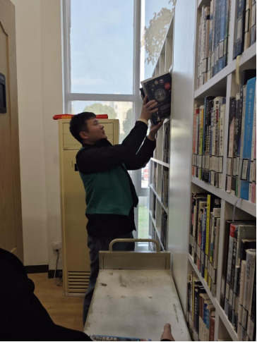 在图书馆工作人员的带领下,志愿者们身穿统一的绿色志愿服,分组来到图书馆一楼、二楼借阅室,协助图书馆工作人员将书籍分门别类,放在规定位置。在整理过程中,志愿者们保持高度的专注和秩序,确保各类书籍“对号入座”,从而帮助读者便捷使用图书资源,为来馆阅读的群众提供了一个良好的阅读环境。