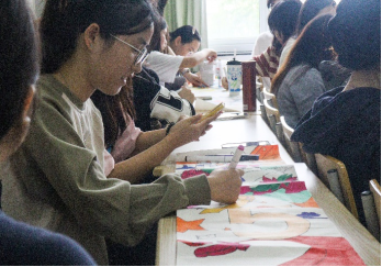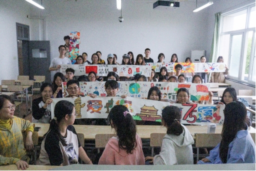 此次活动共分为五个小组,现场绘画关于新中国成立以来的重大事件,活动过程中同学们一笔一画,精心绘画。作品完成后,各小组讲解人上台向同学们讲述所画内容。每一组画卷内容都立意深刻,积极向上,材料典型,构思巧妙。一幅幅精心绘制、色彩鲜活的画报展现了同学们的爱国热情和蓬勃向上的精神面貌。整个活动氛围和谐,充满欢声笑语。