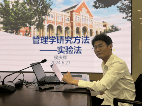 沙龙主题发言人侯庆辉博士作了“管理学研究方法——实验法”的主题报告。侯庆辉博士首先阐述了研究方法的重要性;其次,分析了实验法在管理学研究方法中的地位和作用;接着,侯博士通过一个案例阐释了实验方法的关键要素以及如何有效设定三个重要变量;最后,侯博士对常见的实验设计进行了生动的分析。与会老师对本次活动表现出较大的兴趣。