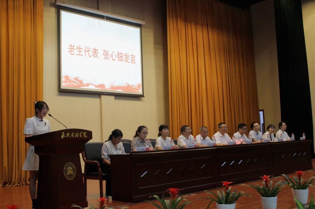 新生代表工商222林语儿同学表达了对大学生活的向往与期待,老生代表人力N211班张心钿同学代表学长、学姐向新同学表示热烈的欢迎,并结合自己一年的大学学习生活经历,告诫学弟学妹们要以“赶考”精神答好青春“试卷”。