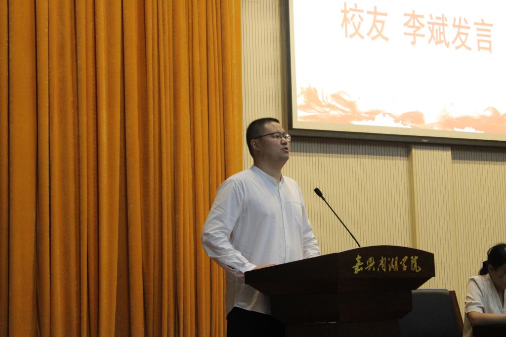 人力资源管理专业2007级校友、浙江青莲食品有限公司人资行政中心总监助理兼高级人才发展经理李斌作为校友代表发言,他结合自己学习和工作经历给同学们做了精彩分享。最后,他希望学弟学妹们要学会透过现象看本质,学会思考;完成角色转变,学会自律,变的出色;立下目标,并稳稳的实现!