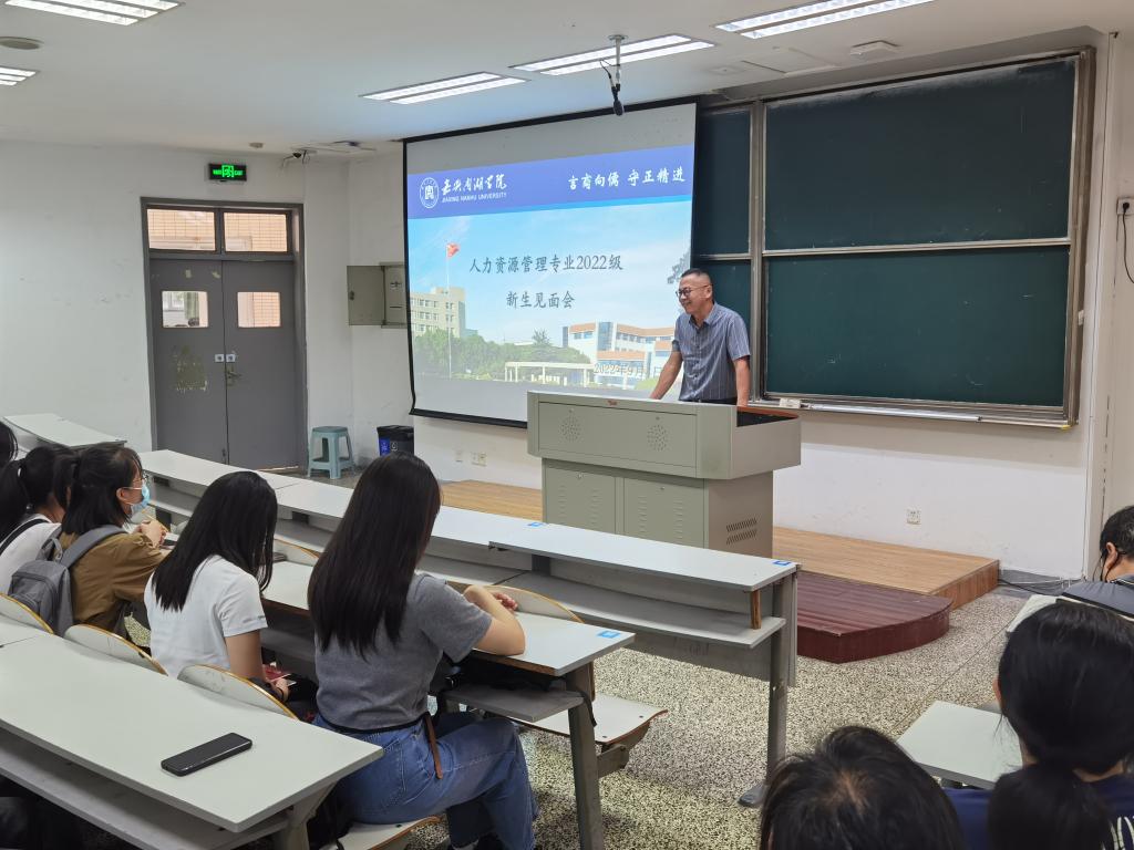 2022年9月4日,beat365在线唯一官网人力资源管理专业2022级新生师生见面会暨始业教育在教一159顺利举行。