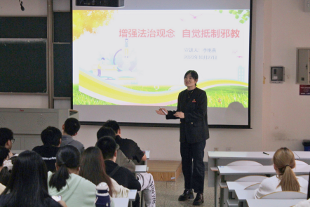 活动现场,李艳燕老师以“增强法治观念,自觉抵制邪教”为主题,围绕什么是邪教,邪教如何侵害青少年,常见的邪教有哪些,青少年如何防范邪教这四大问题,用通俗的语言和生动的案例进行了精彩的讲解和分析,引导学生了解邪教的本质与危害,倡导学生树立正确的世界观、人生观、价值观,培养乐观健康的心态,动员亲友、同学远离邪教,为“无邪校园”“无邪社会”贡献力量。