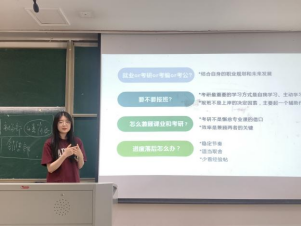 随后,由2024届考研上岸学生进行考研经验的交流与分享。营销(专升本)221班的刘心雨同学、营销(专升本)222班的韩佳宁同学与新材料工程学院化工N201班的李硕同学分别从各自的考研规划、课程学习方法及考研心路出发进行深入分享,同时鼓励同学们要勇于挑战自己,迎接更好的自己。