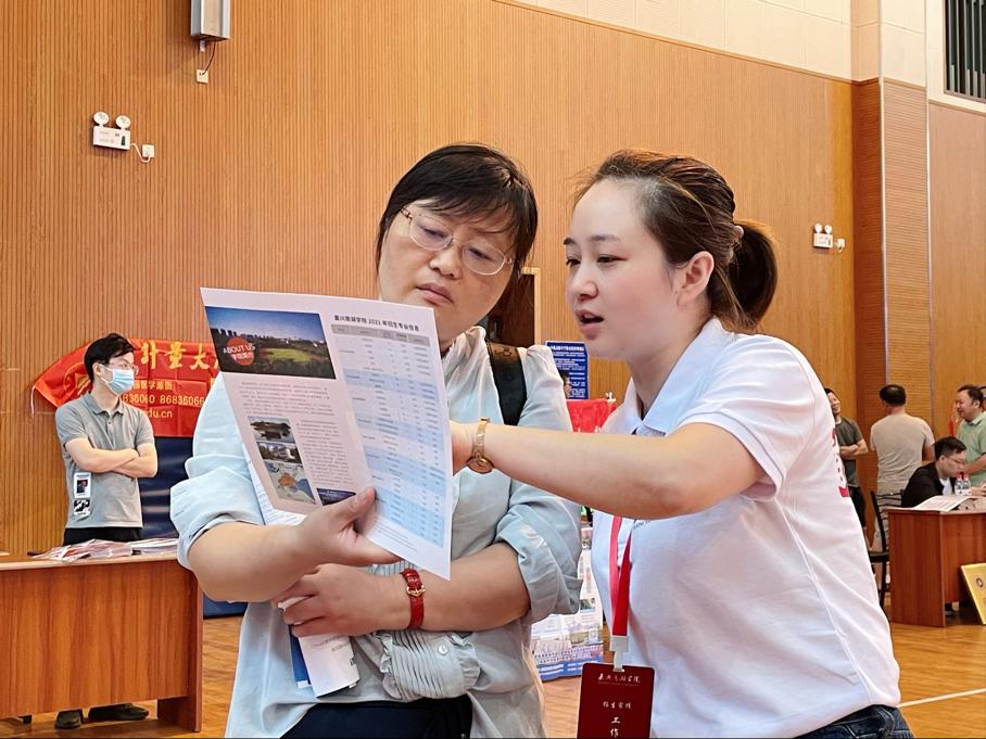 现场有来自不同领域的报考专家进行高考志愿填报的培训,为学生择校择专业提供服务。同时,省内外多所高校参与招生咨询服务,beat365负责招生宣传的教师在第一时间赶到现场,做好宣传准备工作,并主动为家长和学生答疑解惑。