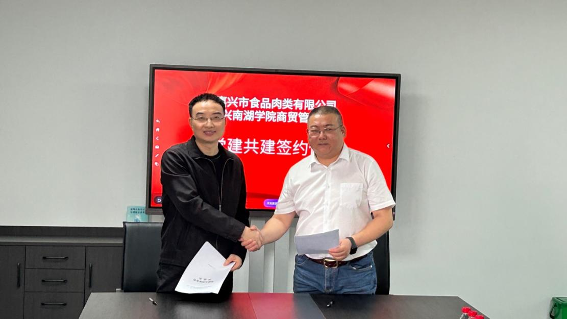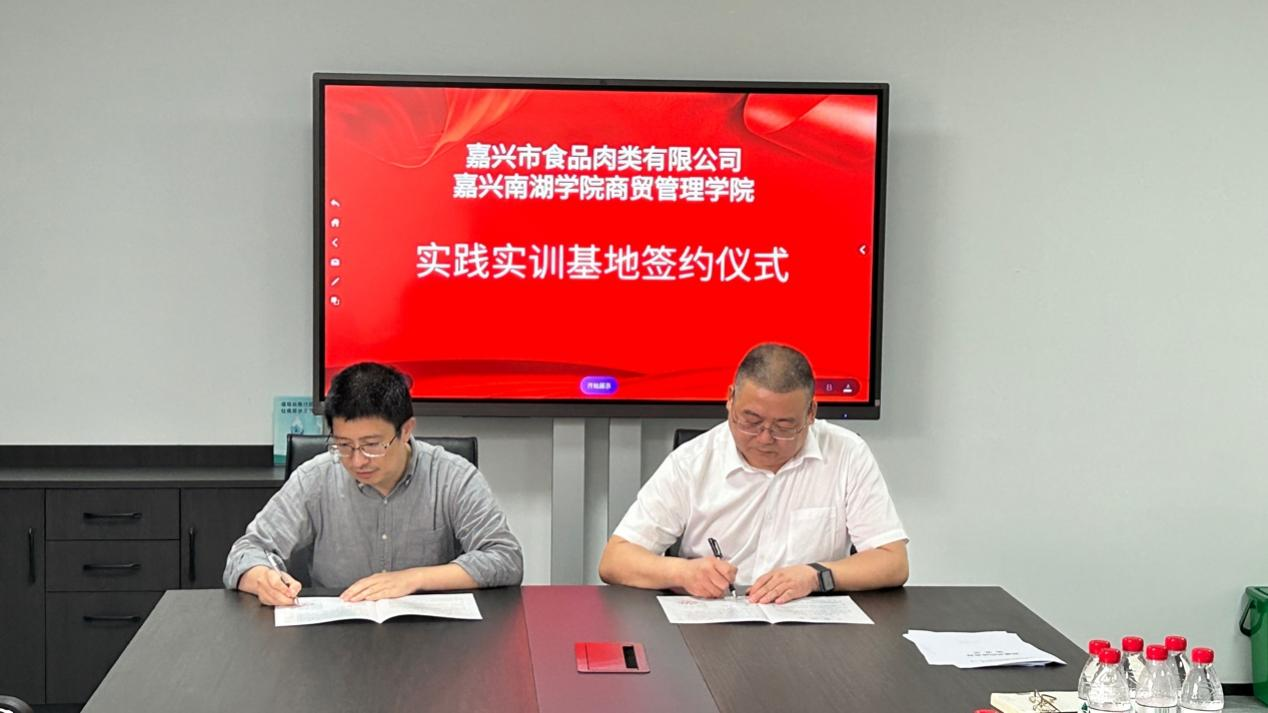 副院长夏江华代表学院与嘉兴市食品肉类有限公司签订实践实训基地合作协议。