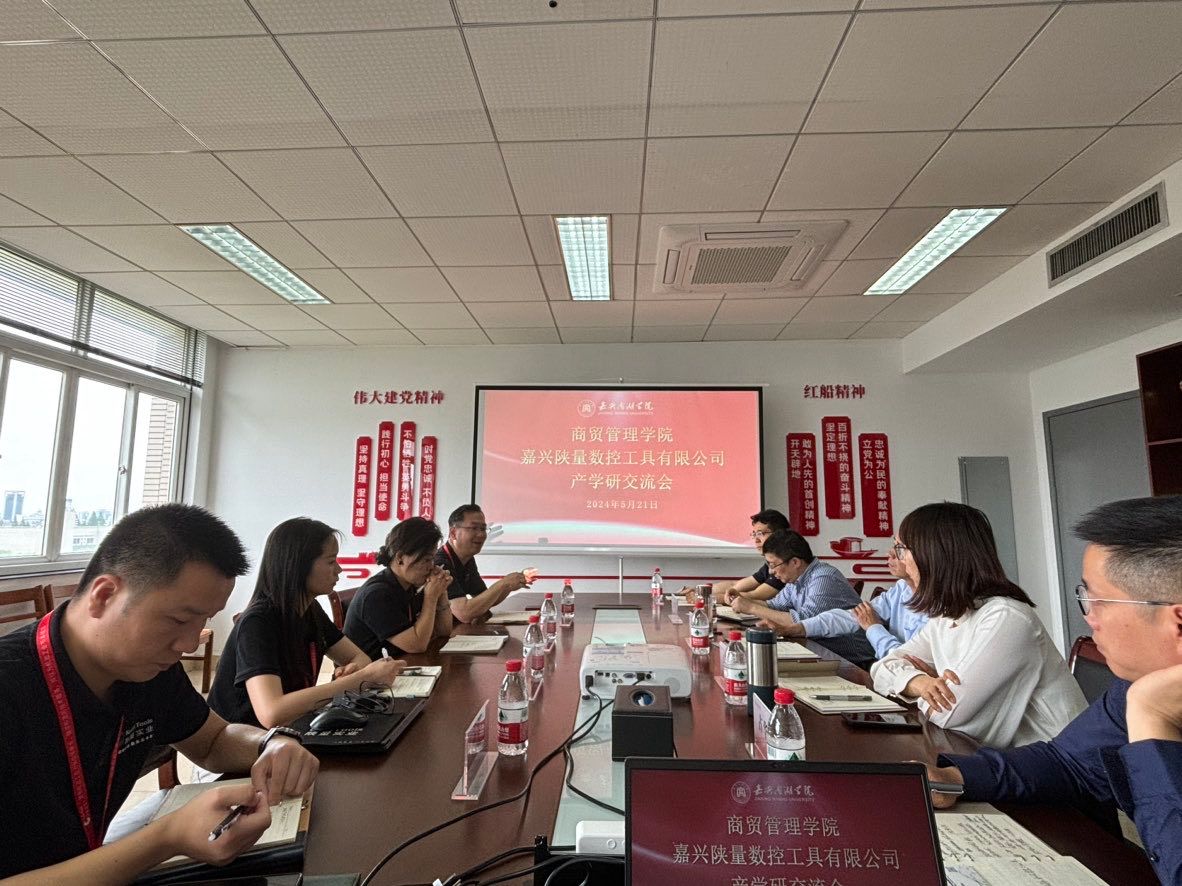 会上,孔冬院长对谢丽丽一行的来访表示了欢迎,并介绍了学院师资力量、专业设置等基本情况,魏巍副院长对学院数智管理研究中心以及校企合作情况进行了详细的介绍。嘉兴陕量数控工具有限公司总裁谢丽丽介绍了公司发展历程、主要业务范围、团队规模、研发情况及未来发展规划。双方就人才培养、实践实训、创新创业等合作内容进行了深入交流和探讨。
