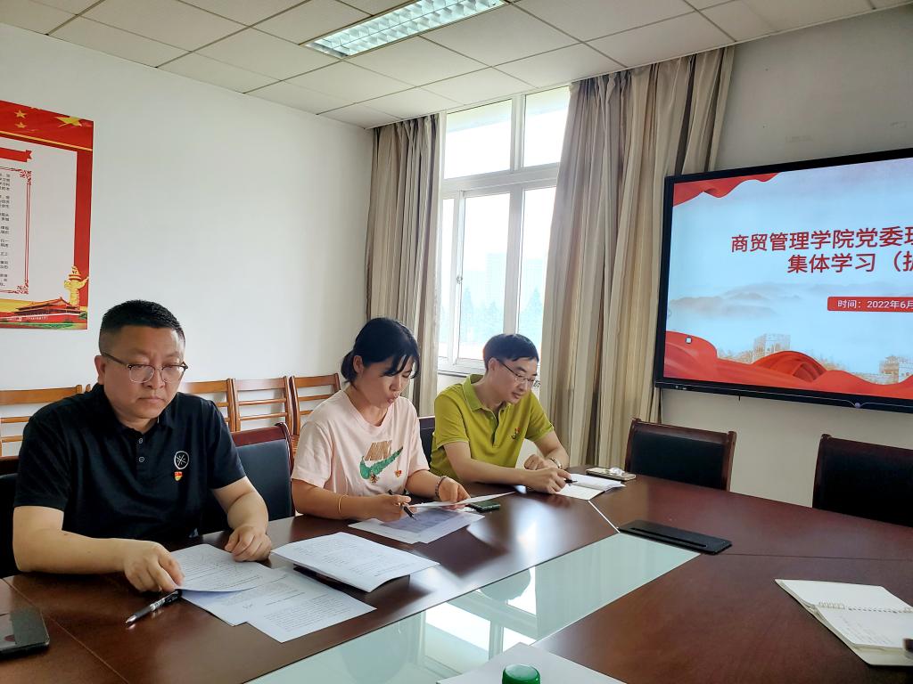 6月16日下午,beat365在线唯一官网党委理论学习中心组举行集体学习(扩大)会,集中学习习近平总书记在庆祝中国共产主义青年团成立100周年大会、中央政治局第三十八次集体学习、中央经济工作会议和中国人民大学考察时的重要讲话精神,院党委成员刘勇、孔冬、夏江华,院学工负责人、党建工作室负责人、教职工以及学生党支部书记出席会议。
